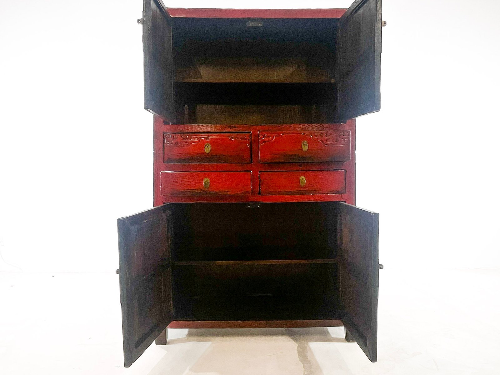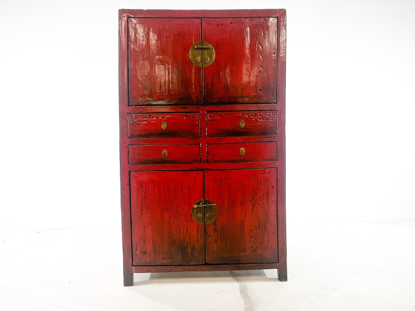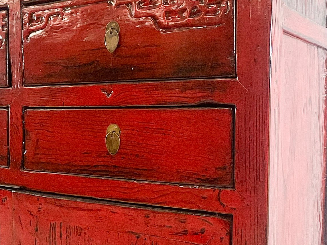 Alacena china restaurada. 2 puertas dobles con 4 cajones centrales. Lacado en rojo.//Republican era, circa 1920. Restored. (Qinghai)