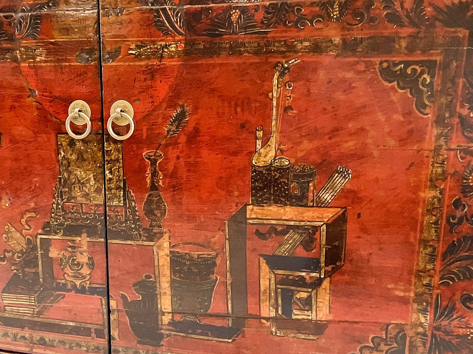 Aparador chino con panel puertas restaurado. 2 puertas Azul celeste/Rojo Lacado y Pintado a Mano. Estructura e interior actuales.//Republican era 1920s. (Shandong)