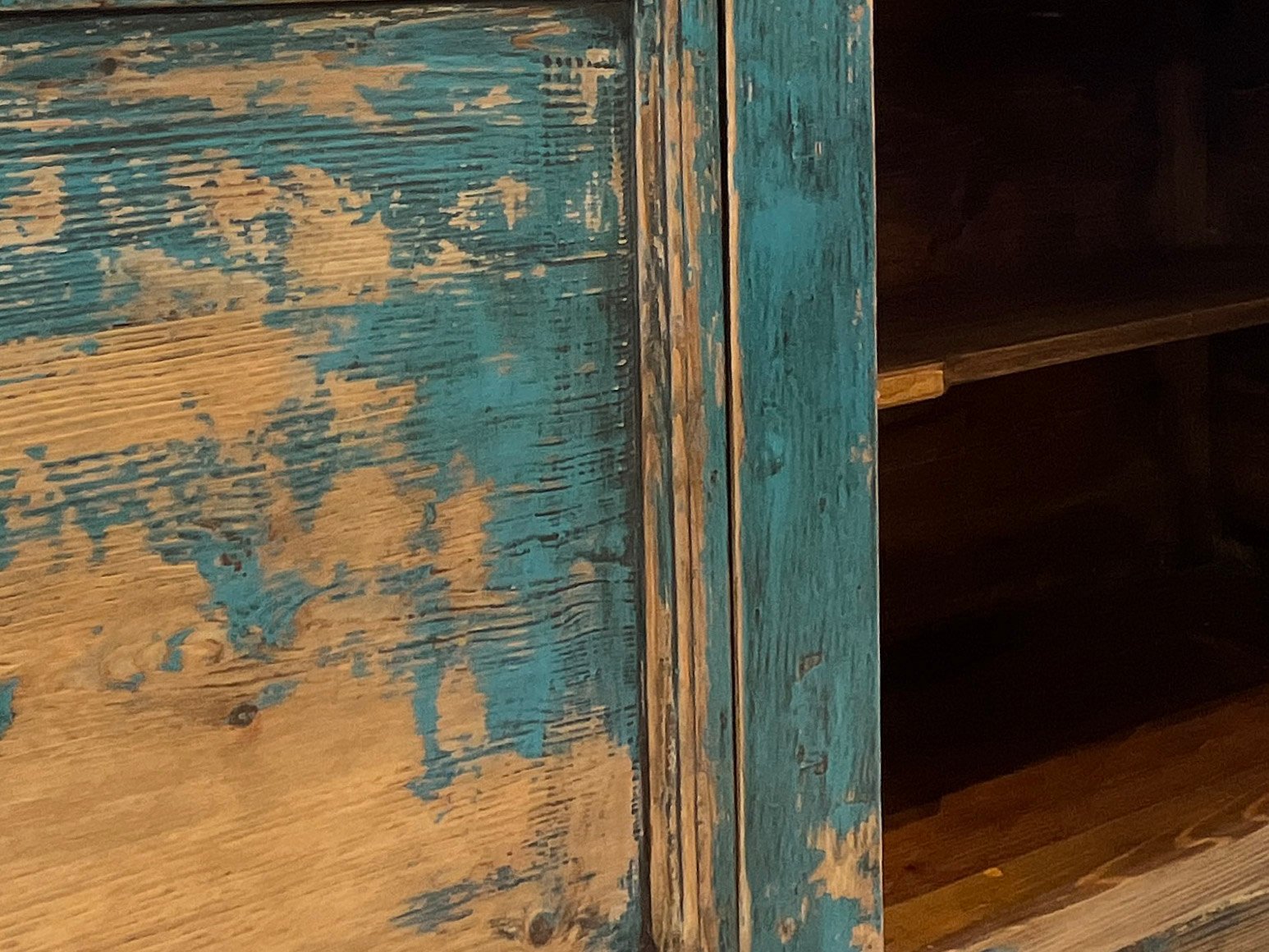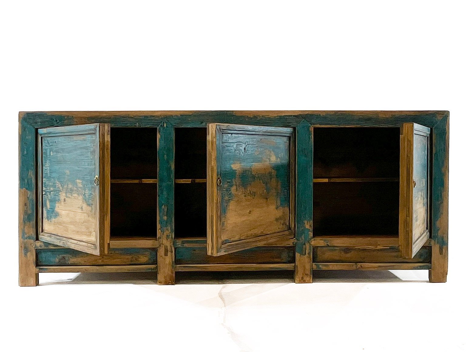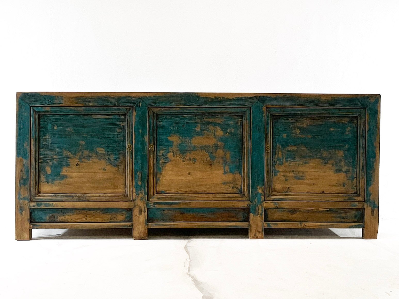 Aparador antigüo chino restaurado. 3 puertas Azul/Natural envejecido//Republican era, circa 1920. (Gansu)