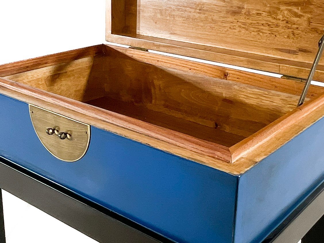 Baúl para mesilla de noche/Mesa Baúl auxiliar Azul. Réplica del estilo artesanal de la dinastía Ming. //Newly made. (Modern Oriental inspired by Ming Dynasty style)