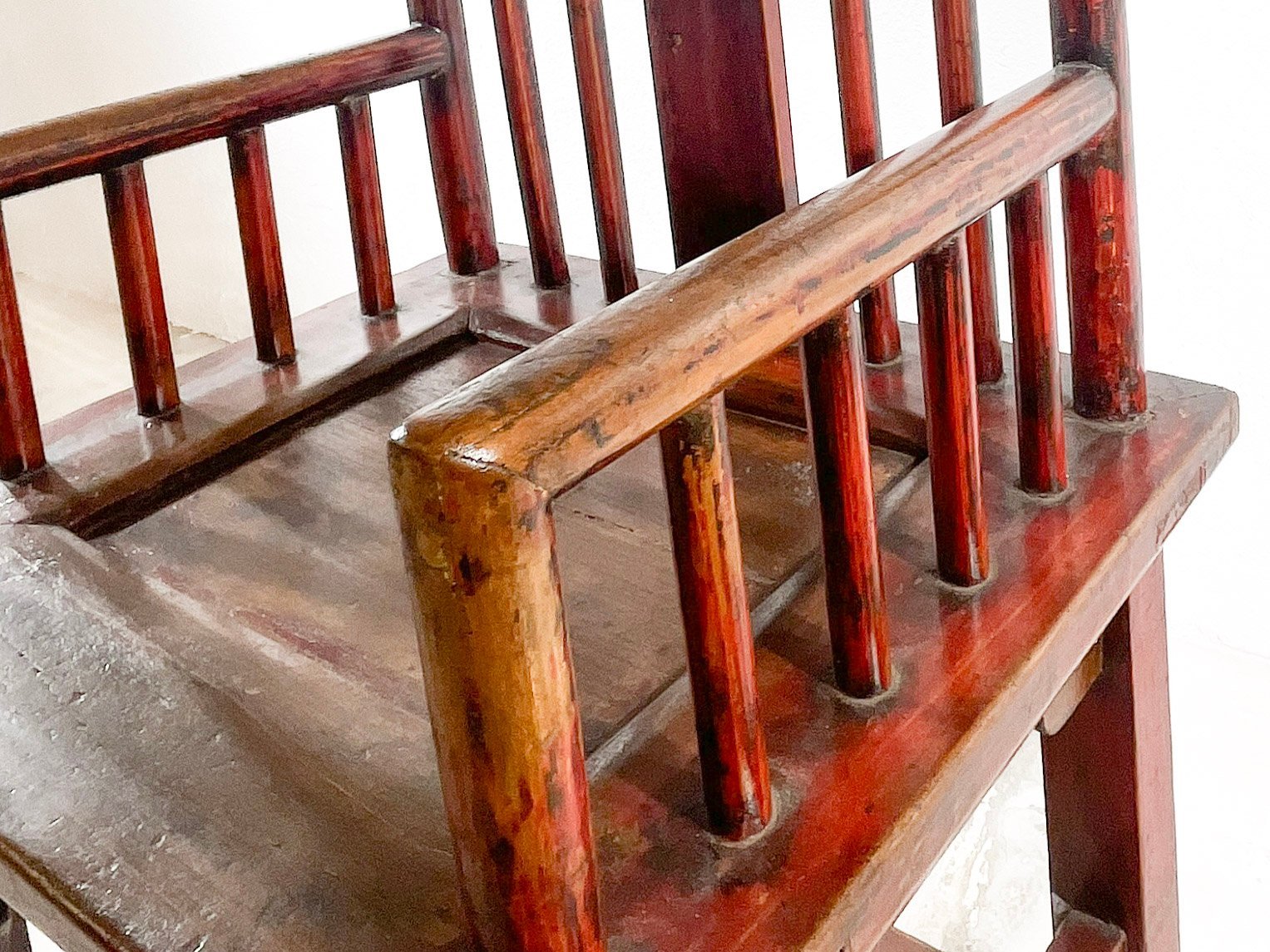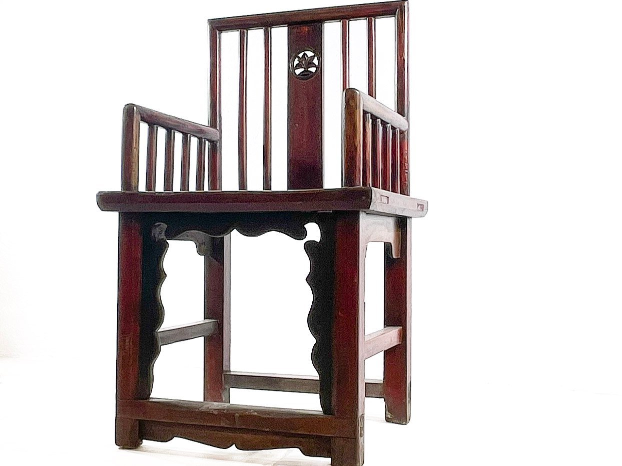 Silla con reposabrazos. Madera rojiza barnizada.//Republican era, circa 1920.. (Gansu)